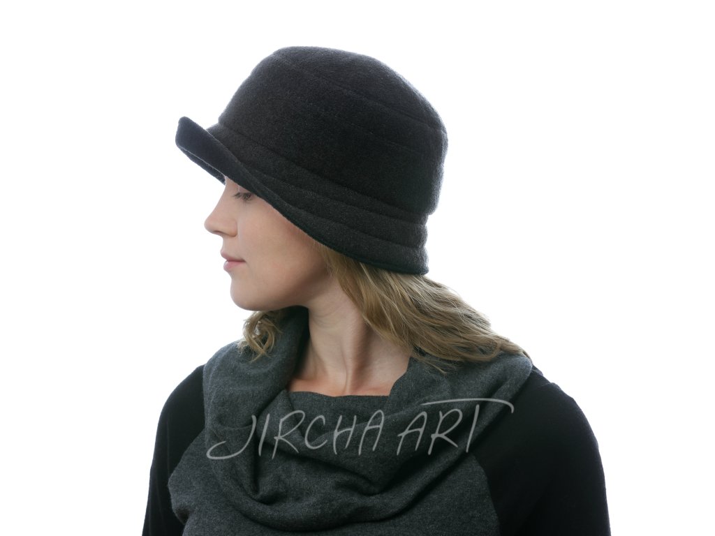 Černý dámský klobouk pro zimní počasí s kulatým dýnkem