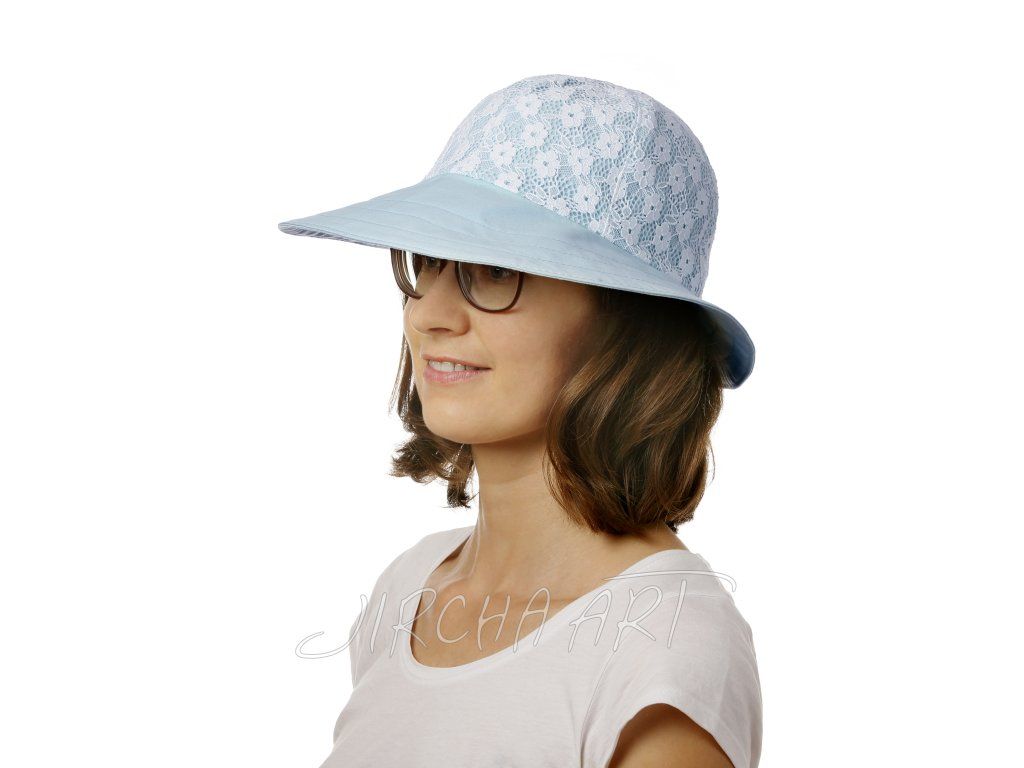 Modrý letní klobouk s krajkou