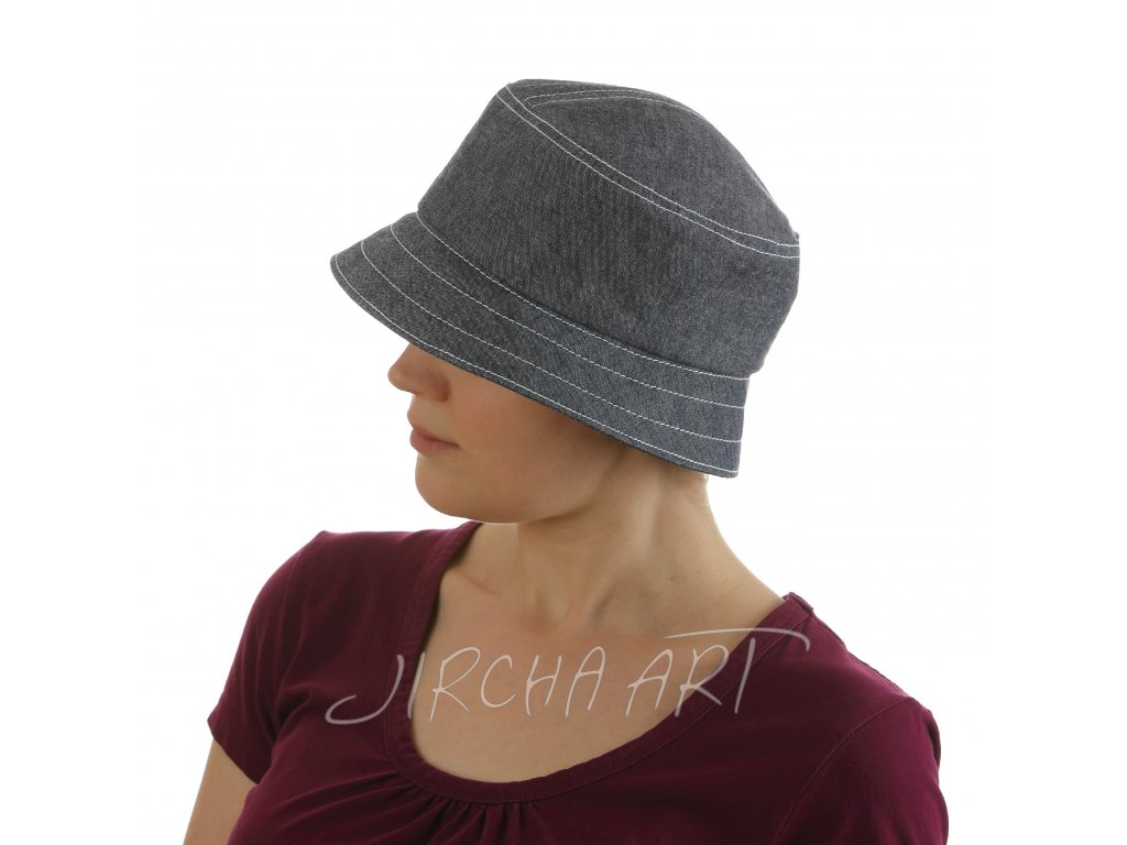 Jaro | LétoMODEL: R08-1-1 | Designový dámský klobouk pro jaro a léto z originálního krešového materiálu. Béžovo-šedou barvu doplňují bílé květinky....